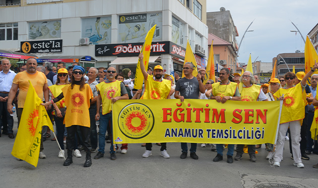 Anamur’da 1 Mayıs İşçi Bayramı, Çavuşpınarı Meydanı’nda binlerce kişinin katılımıyla kutlandı.ANAMUR 1 MAYIS TERTİP KOMİTESİ'SİNİN AÇIKLAMASI AYNEN ŞÖYLE:EKMEK, ADALET VE HÜRRİYET İÇİN 1 MAYIS’TA ALANLARI DOLDURANLARA SELAM OLSUN! 1 Mayıs İşçi Sınıfının Uluslararası Birlik Mücadele ve Dayanışma günü! 2024 1 Mayıs’ında haklarımız için, adalet için, demokrasi için, barış için mücadele eden biz işçiler dünyanın dört bir yanında meydanlarda buluştuk. Yılın 365 günü ezilen, sömürülen, horlanan ve yok sayılan milyonlar olarak 1 Mayıs alanlarını doldurduk taleplerimizi, umutlarımızı ve tepkilerimizi dile getiriyoruz. Cumhuriyetin ikinci yüzyılının ilk 1 Mayıs’ını ülkemiz için önemli bir dönemeçte kutluyoruz. Bu ülkenin tüm değerlerini ve güzelliklerini üreten bizler, bu ülkenin emekçileri, emeklileri, gençleri, kadınları olarak hesap soruyoruz, değiştirme iradesini güçlü bir biçimde ortaya koyuyoruz. Siyasi iktidarın yoksullaştırıcı ekonomi politikalarına ve hukuksuzluklarına “Dur” diyoruz. Emek ve demokrasi mücadelemizin yeni bir dönemini 1 Mayıs meydanlarından başlatıyoruz. Ekmeğimizin her gün ama her gün küçüldüğü; gelirde, vergide ve ülkede adaletsizliklerin arttığı; hak ve özgürlüklerimizin alabildiğine kısıtlandığı bu süreçte, hükümetin yoksullaştırıcı ekonomik programına, seçimden sonra uygulayacağını ilan ettiği acımasız kemer sıkma politikalarına, tüm haksızlıklara, hukuksuzluklara, adaletsizliklere karşı itirazlarımızı 1 Mayıs meydanlarına taşıdık! Ülkemizde güçlü bir tarihi olan 1 Mayıs’ı işyeri işyeri, sokak sokak, meydan meydanörgütledik ve sokağa çıktık.Ekmek için 1 Mayıs’tayız! Yüksek enflasyon yüzünden her gün ama her gün yoksullaşıyoruz. Tüm dünyada gıda fiyatları düşerken Türkiye gıda enflasyonunda açık ara birinci. Bankalar, holdingler, şirketler karlılık rekorları açıklarken bizler yoksullaşıyoruz. Çalışanlar açlık sınırının bile altındaki asgari ücrete mahkûm ediliyor. Emeklilere bir asgari ücret bile çok görülüyor. Bu da yetmezmiş gibi vergi yükü hep işçinin, emekçinin, emeklinin sırtında. Sermaye ise keyfine göre vergi veriyor bir gecede vergileri sıfırlanıyor, affediliyor. Yetmiyor! Zaten kuşa döndürdükleri kıdem tazminatımıza bile göz dikiyorlar. Oysa biz çok çalışıyoruz, çok üretiyoruz. Dünyanın en uzun çalışma saatleri Türkiye’de. Üstelik iş cinayetleriyle, meslek hastalıklarıyla cebelleşiyoruz. Türkiye dünyada işçi haklarının en kötü olduğu 10 ülke arasında. Ancak bu böyle gitmez! Adalet için 1 Mayıs’tayız! Mücadelemiz sadece ekmek mücadelesi değil! Demokrasi işçinin ekmeğidir, hukuk ve adalet işçinin güvencesidir. O yüzden 1 Mayıs’ta hukuk ve adalet için mücadele ediyoruz. Adaletin ve hukukun olmadığı yerde haklarımızı demokratik yollarla savunmamız engellenir! Adaletin olmadığı yerde hak yiyenden, yolsuzluk yapandan, suçlulardan hesap sorulmaz! Gelirde, vergide ve ülkede adalet olmadığı içindir ki ülkemizde yoksul her gün yoksullaşırken, zengin servetine servet katıyor. O yüzden 1 Mayıs 2024’te Anayasa’mızda tanımlanan demokratik laik sosyal hukuk devleti için mücadele ediyoruz. “Gün gelir, hukuk gelir ve zorbalar kalmaz gider!” Hürriyet için 1 Mayıs’tayız! Ülkemizde tüm hak ve özgürlükler gibi örgütlenme özgürlüğü, ifade özgürlüğü, hak arama özgürlüğü de büyük bir baskı altında. Sendikalaşma, ifade, toplantı ve gösteri yürüyüşü hakları başta olmak üzere temel hak ve hürriyetler baskıcı otoriter rejim altında kullanılmaz hale getirildi. Bizler, işçiler, emekçiler, emekliler bu ülkenin büyük çoğunluğuyuz. Bizler üretiyoruz, bizler çalışıyoruz. İşte tüm bu nedenlerle, ülkemizin dört bir yanındaki 1 Mayıs alanlarında insanca yaşamak için birleştik! BUGÜN, 1 MAYIS’TA ALANLARI DOLDURAN MİLYONLARA SELAM OLSUN! BİRLEŞE BİRLEŞE KAZANACAĞIZ! YAŞASIN 1 MAYIS, YAŞASIN İŞÇİ SINIFININ VE TÜM EMEKÇİLERİN ONURLU MÜCADELESİ!DİSK SÖZCÜLÜĞÜNDE ANAMUR 1 MAYIS TERTİP KOMİTESİ