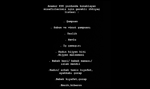 Anamur'da, Prof. Dr. Ali Ayhan Yerleşkesi'ndeki Kredi ve Yurtlar Kurumu, Kahramanmaraş merkezli depremlerde yıkımın yaşandığı kentlerden gelen depremzedeleri misafir ediyor.Merkez üssü Kahramanmaraş'ın Pazarcık ve Elbistan ilçeleri olan 7.7 ve 7.6 büyüklüğündeki depremlerin ardından bölgeden tahliye edilen depremzedeler, yurdun dört köşesinde bulunan Kredi Yurtlar Kurumuna (KYK) ait yurtlara yerleştiriliyor. Depremzedelere kucak açan Anamur'da, Prof. Dr. Ali Ayhan Yerleşkesi'ndeki Kredi ve Yurtlar Kurumu, depremzedeler için hazırlandı. İlçeye getirilen bazı depremzede aileler, KYK yurduna yerleştirildi.Anamur KYK ihtiyaç listesi paylaştıAnamur KYK depremzedeler için acil ihtiyaç listesini paylaştı. Anamur KYK öncelikli ihtiyaç listesi için, "Anamur KYK yurduna gelen misafirlerimiz için ihtiyaç listesi belirtilmiştir. İhtiyaçlar gerekli oldukça liste güncellenecektir. Yardımlarınızı Ören, Prof. Dr. Ali Ayhan Yerleşkesi'nde bulunan KYK yurduna bırakabilirsiniz." açıklamasını yaptı.