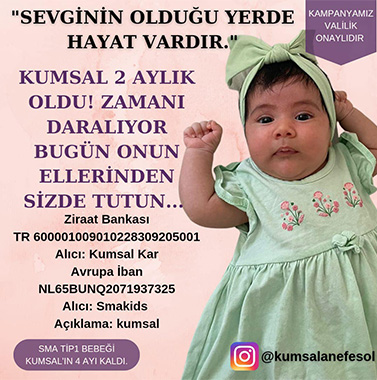 Cumhuriyet Halk Partisi (CHP) Bozyazı İlçe Başkanı Baykal Arıdeniz, Spinal Musküler Atrofi (SMA) Tip 1 ölümcül kas hastası olan Kumsal Kar bebek için Mersin Valiliği izni ile başlatılan yardım kampanyasına destek çağrısında bulundu.CHP İlçe Başkanı Baykal Arıdeniz, Kumsal Kar bebeğin ailesini bu süreçte yalnız bırakmayacaklarını ifade ederek, "Bozyazı ilçemizden Türkiye’nin en küçük SMA hastası Kumsal bebek tedavisi için çare arıyoruz. İyi Parti İlçe Başkanı Sezai Hasdeniz ile birlikte Yenişehir Belediye Başkanımız Abdullah Özyiğit’i, Mersin Büyükşehir Belediyesi kadın daire başkanımız Şerife hanımı ziyaret ettik. Ardından Kumsal bebeğimizin anne ve babasıyla İl Başkanımız Adil Aktay’ı, Kadın ve Gençlik Kolları Başkanlarımız Gülşah Yıldırım Genç, Alkım Sümer ile bir araya geldik.Tüm SMA hastası bebeklerimiz için ne yapabiliriz onu konuştuk.Siz de destek olmak isterseniz Kumsal bebeğimize bağışta bulunun." açıklamasını yaptı.