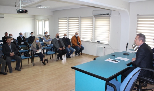 Kaymakam Bilal Bozdemir başkanlığındaki toplantıda, İlçe Sağlık Müdürlüğü ekipleri sunum yaptı.