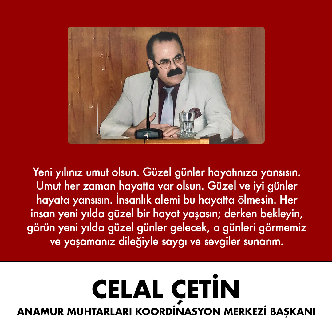 ANAMUR GAZETESİ / Musa Suğan - Anamur Muhtarları Koordinasyon Merkezi Başkanı Celal Çetin, 2023 yılı için, yeni yıl mesajı yayınladı.