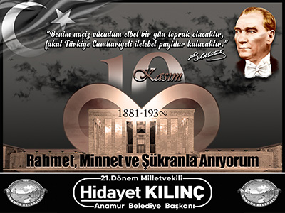 ANAMUR GAZETESİ / Musa Suğan - Anamur Belediye Başkanı Hidayet Kılınç, Atatürk’ün vefatının 85. yıl dönümü nedeniyle bir mesaj yayınladı.