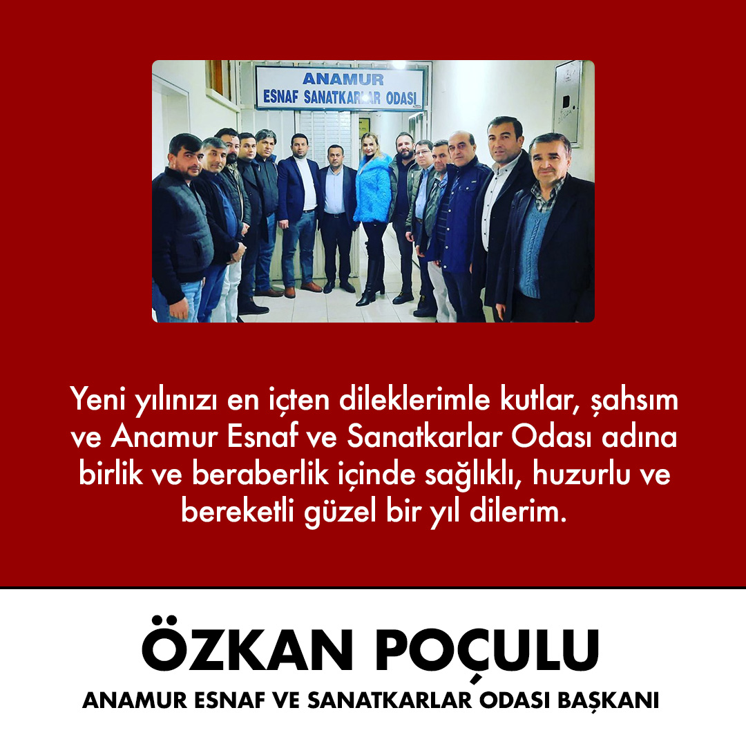 ANAMUR GAZETESİ / Musa Suğan - Anamur Esnaf ve Sanatkarlar Odası Başkanı Özkan Poçulu, yeni yıl dolayısıyla bir mesaj yayımladı.
