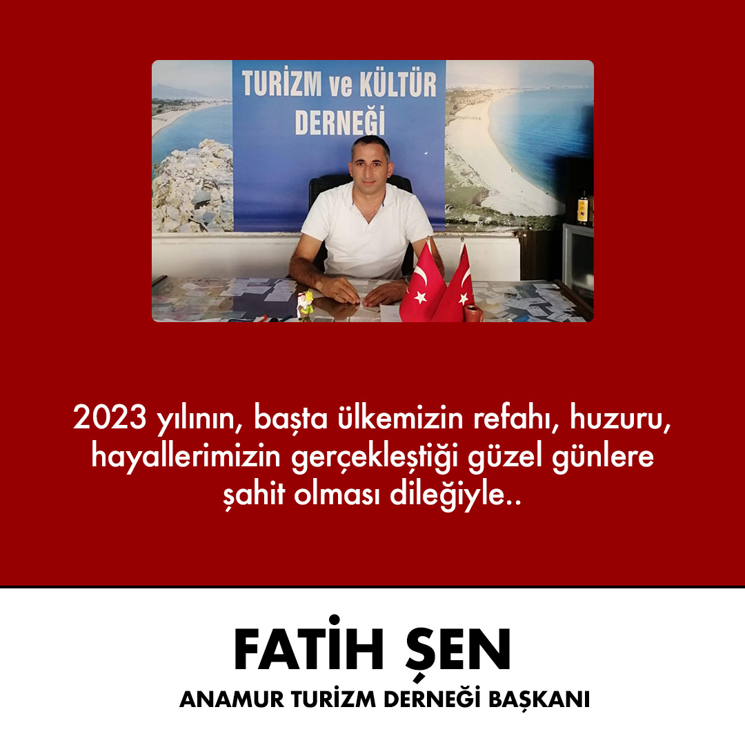 ANAMUR GAZETESİ / Musa Suğan - Anamur Turizm Derneği Başkanı Fatih Şen, 2023 yılı için, yeni yıl mesajı yayınladı.