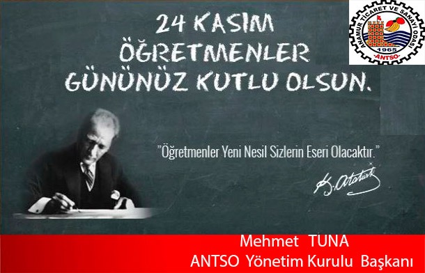 ANAMUR GAZETESİ / Musa Suğan - Anamur Ticaret ve Sanayi Odası Yönetim Kurulu Başkanı Mehmet Tuna, 24 Kasım Öğretmenler Günü dolayısıyla bir mesaj yayımladı.