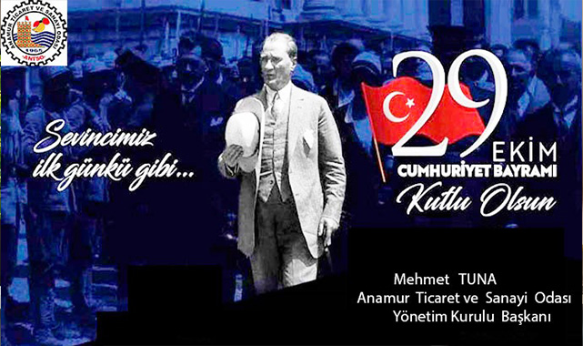 ANAMUR GAZETESİ / Musa Suğan - Anamur Ticaret ve Sanayi Odası (ANTSO) Yönetim Kurulu Başkanı Mehmet Tuna, 29 Ekim Cumhuriyet Bayramı vesilesi ile kutlama mesajı yayımladı.