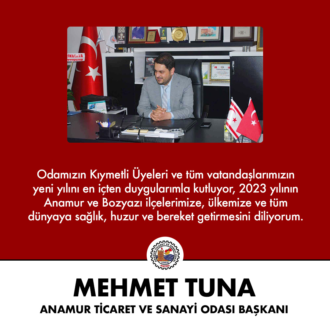 ANAMUR GAZETESİ / Musa Suğan - Anamur Ticaret ve Sanayi Odası Başkanı Mehmet Tuna, yeni yıl dolayısıyla bir mesaj yayımladı.