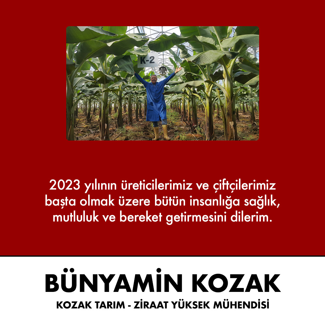 ANAMUR GAZETESİ / Musa Suğan - Kozak Tarım Sahibi Ziraat Yüksek Mühendisi Bünyamin Kozak, 2023 yılı için, yeni yıl mesajı yayınladı.