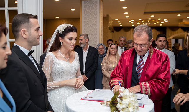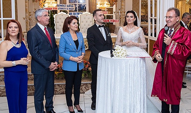 Mersin Büyükşehir Belediye Başkanı Vahap Seçer, Mersin Büyükşehir Belediyesi Basın Yayın ve Halkla İlişkiler Dairesi Başkanı Dilan Atabey ile Özgür Eken’in nikâhlarını kıyarak, mutluluklarına şahit oldu.Toroslar İlçesi’nde yer alan La Bella Concept’teki düğüne; Mersin Büyükşehir Belediye Başkanı Vahap Seçer ve eşi Meral Seçer, Cumhuriyet Halk Partisi (CHP) Mersin Milletvekili Gülcan Kış, Mersin Büyükşehir Belediyesi ve MESKİ bürokratları, daire başkanları, çiftin aileleri, yakınları, akrabaları, arkadaşları, dostları ve basın camiası katıldı.Çiftin nikâh şahitliklerini ise; CHP Mersin Milletvekili Gülcan Kış, Mersin Büyükşehir Belediye Başkan Danışmanı Bedrettin Gündeş ile Mersin Büyükşehir Belediyesi Özel Kalem Müdürlüğü'nden Burcu Tekgül yaptı. İlk dansın ardından nikâha geçildi ve Başkan Seçer çiftin nikahını kıydı.Seçer: “Mutlu bir evlilikleri olsun”Başkan Seçer nikâhı kıydıktan sonra yaptığı konuşmasında; Atabey ile Eken çiftini tebrik ederek; “Allah mutlu, mesut etsin. Bir yastıkta kocasınlar. Mutlu bir evlilikleri, hayırlı evlatları olsun. Ailelerine, vatana, millete, insanlığa faydalı çocukları olsun” dedi ve çiftin nikâhını kıydı. Seçer nikâhı kıydıktan sonra “Hayırlı olsun” dileklerinde bulundu. Aile Cüzdanı’nı Milletvekili Kış, çifte takdim ettiNikâhın ardından Başkan Seçer, Aile Cüzdanı’nı CHP Mersin Milletvekili Gülcan Kış’a teslim etti ve Kış da Aile Cüzdanı’nı gelin ile damada birlikte takdim etti. Aile Cüzdanı’nı takdim eden Kış konuşmasında; “Dilan da Özgür de bugün çok heyecanlılar. Bu heyecanınız bir ömür boyu sürsün istiyorum. Bugünkü heyecanla mutlak surette çok daha mutlu olacağınıza inanıyorum. Bugüne kadar hayatlarınızı ayrı ayrı yaşadınız, kararlarınızı ayrı ayrı aldınız. Ama ben sizden şunu isteyeceğim; bundan sonraki hayatı birlikte yaşayın, birlikte kararlar alın ve birlikte mutlu olma yolunu seçin. Size bir ömür boyu mutluluklar diliyorum. Güzel bir yuvanız, mutlu bir evliliğiniz ve uzun bir ömrünüz olsun. Bu vesileyle Aile Cüzdanı’nızı ikinize teslim edeceğim. İkiniz gözünüz gibi koruyun istiyorum ” dedi. Nikah töreninin ardından yeni çiftin yakınları doyasıya eğlenerek mutlu güne ortak oldular.