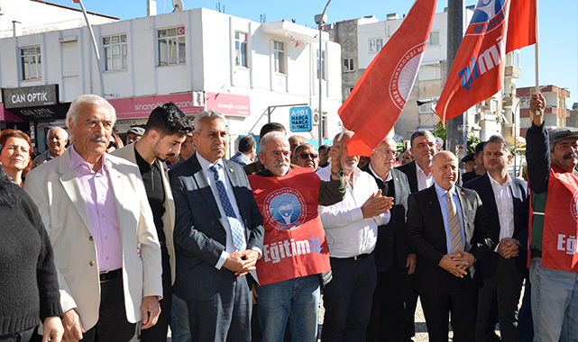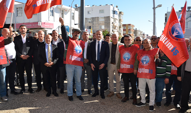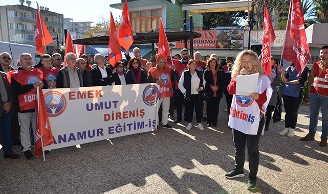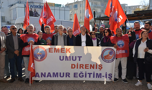 Sefalet bütçesine boyun eğmiyoruz!Hakça paylaşım, insanca yaşam ve emeğin hakkı için; Eğitim-İş ve Konfederasyonumuz Birleşik Kamu-İş’e bağlı sendikalarımız Büro-İş, Enerji-İş, Genel Sağlık-İş, Güven Haber-Sen, Kültür Sanat-İş, Tapu Çevre Yol-İş, Orman-İş, Tüm Yerel-Sen, Ulaşım-İş, Uzman Diyanet-Sen olarak alanlardayız.”Çavuşpınarı Meydanı’ndaki eyleme; CHP Mersin İl Başkanı Koral Ömür, İl Başkan Yardımcısı Turabi Yeşilçayır, CHP Anamur İlçe Başkanı Arif Çakırcı, Büyükşehir Koordinatörü Erdal Karan, öğretmenler ve çok sayıda vatandaş katıldı.