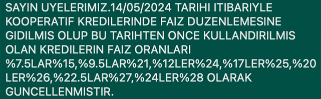 Halkbank esnaf ve sanatkarların kullandığı borcu devam eden kredilerde Faiz oranını yükseltti. Anamur Esnaf ve Sanatkarlar Kredi ve Kefalet Kooperatifi'nden, esnaf ve sanatkarlara kullandırılan kredilerde faiz oranının yükseltildiği bildirildi.Yapılan faiz değişikliğinin ise şöyle olduğu belirtildi:14 Mayıs tarihi itibariyle kooperatif kredilerinde faiz düzenlemesine gidilmiş olup, bu tarihten önce kullandırılmış faiz oranları yüzde 7,5'lar yüzde 15'e yükseltildi. Yüzde 9,5'lar yüzde 21'e, yüzde 12'ler yüzde 24'e, yüzde 17'ler yüzde 25'e, yüzde 20'ler yüzde 26'ya, yüzde 22,5'lar yüzde 27'ye, yüzde 24'ler ise yüzde 28 olarak güncellenmiştir.