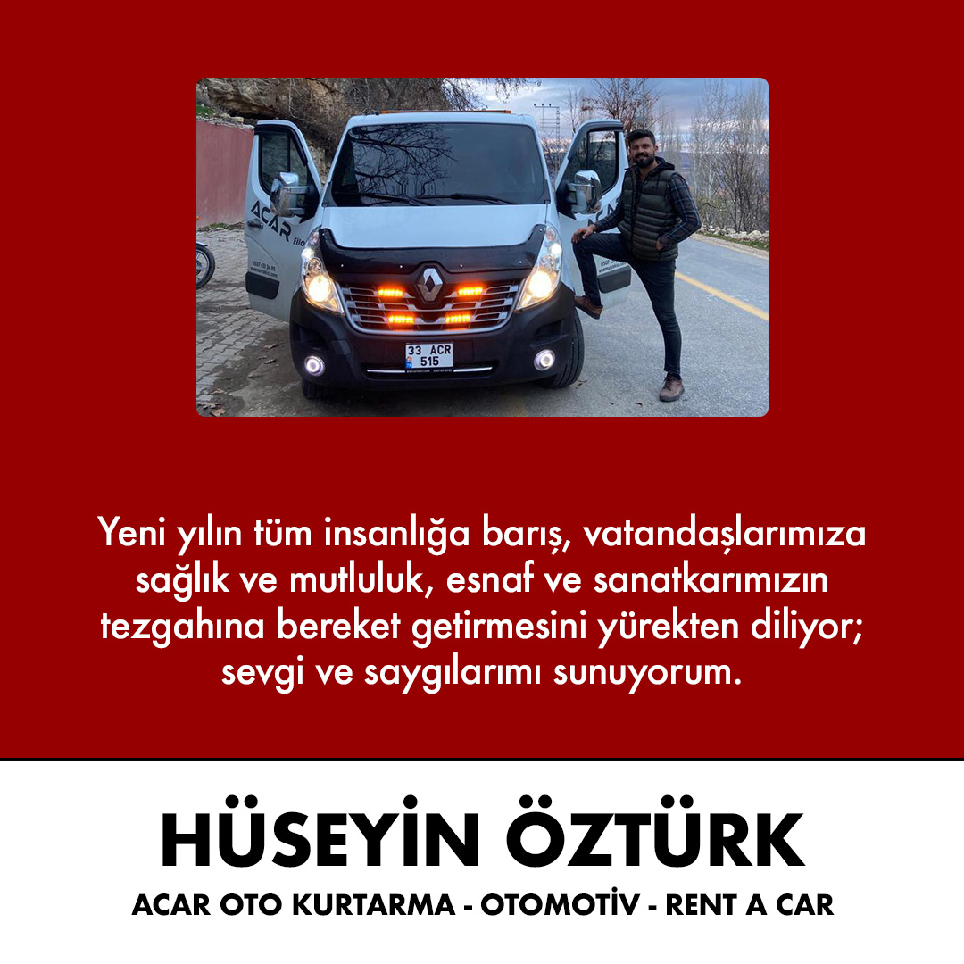 ANAMUR GAZETESİ / Musa Suğan - Acar Oto Kurtarma - Otomotiv - Rent A Car İşletmeleri Sahibi Hüseyin Öztürk, 2023 yılı için, yeni yıl mesajı yayınladı.