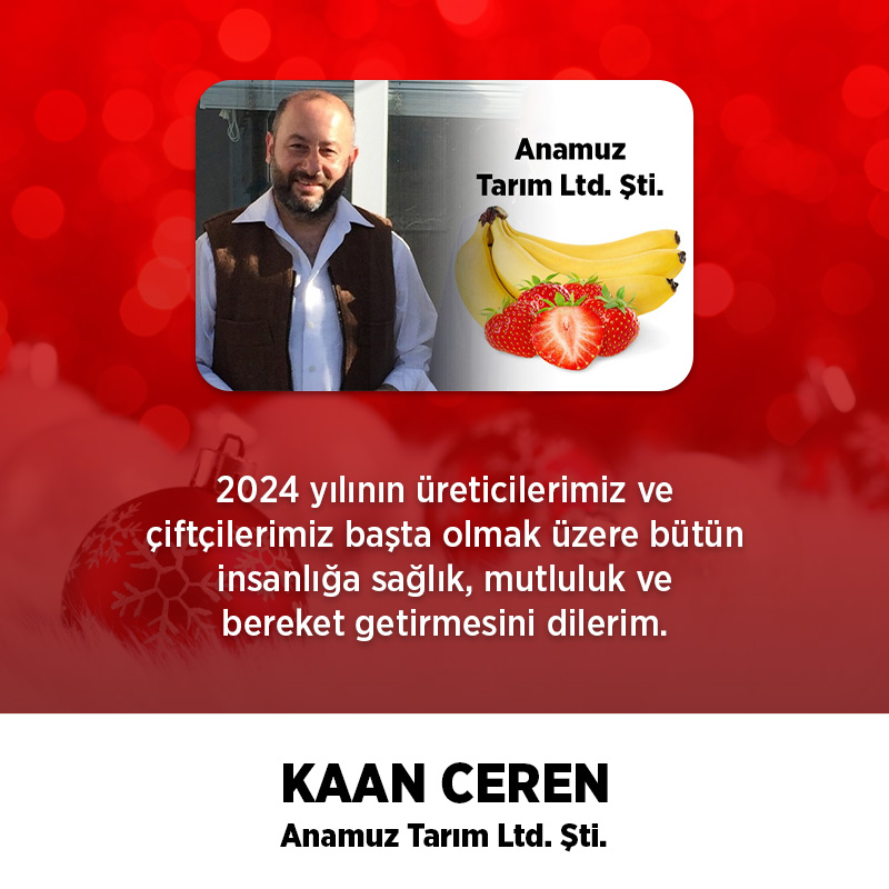 ANAMUR GAZETESİ / Musa Suğan - Anamuz Tarım Ltd. Şti. Firma Sahibi Kaan Ceren, 2024 yılı için, yeni yıl mesajı yayınladı.