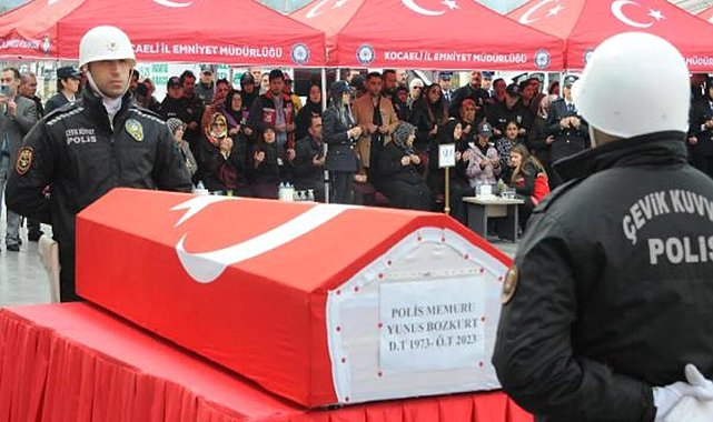 Körfez İlçe Emniyet Müdürlüğü’nde görev yapan polis memuru Yunus Bozkurt, dün akşam saatlerinde evinde kalp krizi geçirdi. Hastaneye kaldırılan Bozkurt, doktorların tüm müdahalelerine rağmen kurtarılamayarak hayatını kaybetti. Evli ve 3 çocuk babası Yunus Bozkurt için bugün Kocaeli Emniyet Müdürlüğü’nde tören düzenledi. Törene polis memurunun eşi Zeynep, kızları Mina, Esmanur ve Ezgi, yakınları ile meslektaşları katıldı. Cenaze töreninde Bozkurt'un ailesi ve yakınları gözyaşlarını tutamadı. Mina babasının şapkasını takarken, eşi Zeynep ise, “Ben ne yapacağım 3 çocukla, ben nasıl dayanacağım. Kurban olayım ona. Yavrularımın boynunu büktü bıraktı gitti. Kocam görevinde başarılı kahraman bir polisti, görevinde asla hainlik yapmadı. Kahraman unvanı bile aldı. Allah’ım sen onu cennetine al” diyerek gözyaşı döktü. Okunan dualar ve helallik alınmasının ardından Yunus Bozkurt'un cenazesi, toprağa verilmek üzere Körfez ilçesine götürüldü. Bozkurt'un cenazesi, Körfez Mehmet Akif Ersoy Camii'nde kılınacak öğle namazının ardından Körfez Asri Mezarlığına defnedilecek.