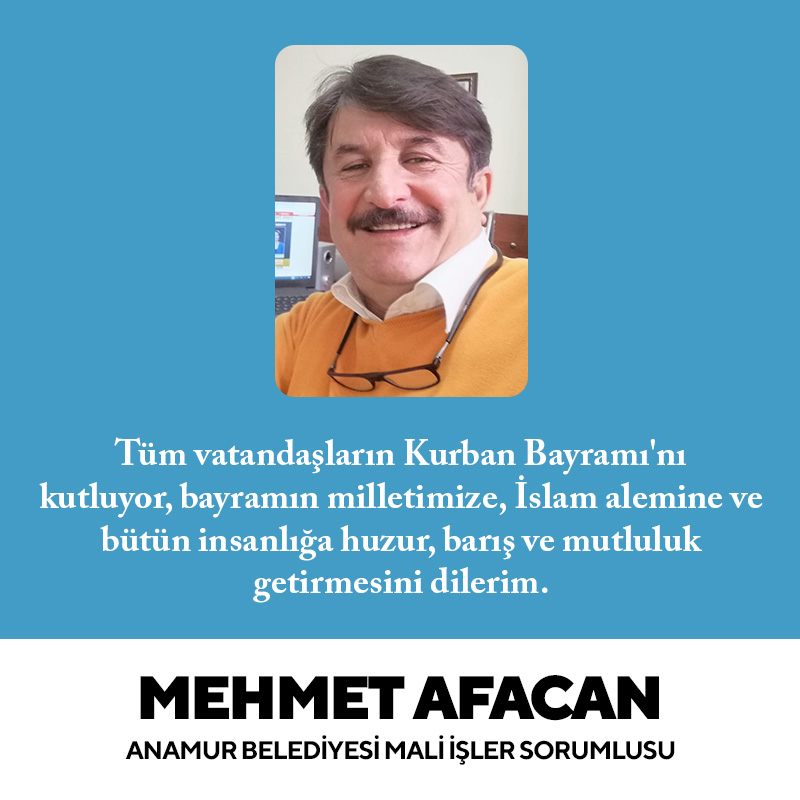 ANAMUR GAZETESİ / Musa Suğan - Anamur Belediyesi Mali İşler Sorumlusu Mehmet Afacan, Kurban Bayramı dolayısıyla bir mesaj yayımladı.