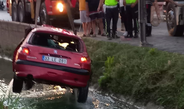 Barış Tekin'in kullandığı 33 LE 091 otomobil, 23 Nisan Caddesi'nde sürücüsünün kontrolünden çıkarak yol kenarındaki sulama kanalına devrildi. Çevredekilerin ihbarıyla olay yerine 112 acil sağlık, polis ve itfaiye ekipleri sevk edildi.