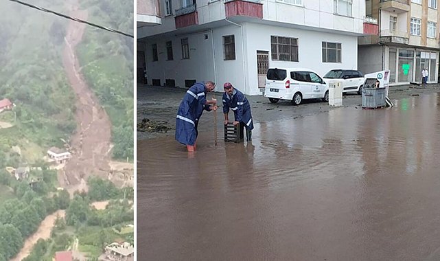 Rize’de dün akşam saatlerinde başlayan şiddetli yağmur etkisini gece saatlerinden itibaren sürdürmeye devam etti. Şiddetli yağmur nedeniyle Çayeli ilçesindeki Madenli, Şairler ve Aşıklar Deresi'nin suları yükseldi. Çayeli ilçesine bağlı Yalı Mahallesi'nde dere taşarak yola İshakoğlu İlkokulu bahçesini su bastı. İlçede meydana gelen heyelanlardan ötürü 5 köy yolu ulaşıma kapandı. İhbarların hemen ardından bölgeye giden AFAD ekiplerinin incelemesinin ardından 8 ev tedbir amacıyla boşaltılarak, 24 kişi tahliye edildi. Heyelandan ötürü kapanan yollar çevre ilçelerden gelen belediye ve il özel idaresi ekipleri iş makineleriyle yol açma çalışmalarını sürdürüyor. “ÇOK ŞÜKÜR İLÇEDE CAN KAYBI YOK AMA MADDİ ANLAMDA HASAR ÇOK” Çayeli Belediye Başkanı İsmail Hakkı Çiftçi, “Sabahın erken saatlerinden itibaren sahadaydık. İlk ihbarlar Aşıklar bölgesinden geldi. Bir aile evini terk etmiş camiye sığınmış. Ayakta olan arkadaşları uyararak sahaya çıktık. Henüz gün ışığı açmamıştı. Özellikle can kayıplarının olabileceği bölgeyi görelim ve tedbir alalım diye o bölgeye gittik. Fakat kaç yerden uğraştıysak da camiye sığınan vatandaşlarımıza ulaşamadık. 7-8 tane farklı yolu denedik ama ulaşamadık. Bölgeye ekiplerimizi yönlendirdik.Yolu açmaya çalışıyorlar. Aşıklar yolu girişinde bulunan kız İmam Hatip Lisesinin karşısında bir eve derenin taşkın sularının girmesiyle beraber zemin kattaki bir aile tehdit altındaydı. AFAD’ın da yardımıyla oradaki aileyi kurtardık. Çok şükür ilçede can kaybı yok ama maddi anlamda hasar çok. Bunlar telafi edilebilecek şeyler. İnşallah bu kapalı yolları, tehdit altında olan yerleri en kısa sürede yolları açarak vatandaşlarla şehri bütünleştireceğiz. AFAD’la birlikte tespitlerimizi yapacağız. Burasıda Küçüktaşhane Mahallesinde 23 kamyona yakın bir hafriyat var. Günün erken saatlerinden itibaren arkadaşlar sahada bulunduğu için bu yolu açmak için geldiler. Belediye olarak sayıyla var. Hepsine yetişemedik.Çevre belediye başkanları aradılar. Onlarında ekipmanlarıyla bu mağduriyet giderilecek. Hemşehrilerimize şunu söylüyoruz, çok şükür can kaybımız yok. Sakin olalım. Şehre ulaşmayla ilgili sıkıntı olabilir. Bugün Cuma herkesin de şehre gelmek istediği bir gün. Biraz sabır ve bizimde gayretimizle inşallah birlikte bu sıkıntıyı da aşacağız” şeklinde konuştu.