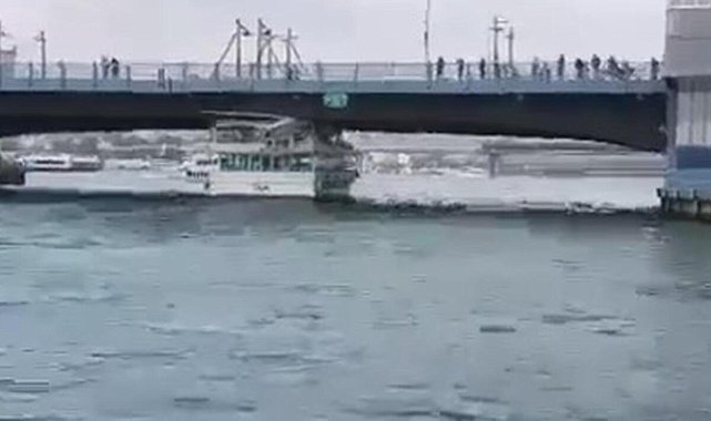 Boğaz'dan Haliç'e ilerleyen tur teknesi, Galata Köprüsü altından geçerken tentesi köprüye katıldı. Dün saat 11.00 sıralarında gerçekleşen olayda, teknenin parçaları denize düşerken, tekne seyrine devam etti. Olay, cep telefonu kamerasına yansıdı. Galata Köprüsü'ne balık tutmak için gelenler olay sırasında köprünün sallandığına dikkat çekerek, kaptanın köprü altına yanlışlıkla girdiğini iddia etti. Ölen ya da yaralananın olmadığı olayda, hasar alan tekne Eminönü'ne yanaştı. Sahil Güvenlik Komutanlığı'nın olayla ilgili tutanak tuttuğu öğrenildi. "KÖPRÜ KOPTU, KORKTUK"Balık tutmak için köprüde olan Ahmet Başaran, "Yanlış girdi, onların giriş çıkışları ortadan. O küçük teknelerin geçtiği yerlerden geçti. Galiba kaptanı acemi veya artık ne olduğunu bilemeyiz. Yanlış girdi, üst çatı komple gitti. Kaza oldu burada da arabanın makasları fırladı. Köprü koptu. Korktuk. Yanlış girdi, onların nereden geçeceği milimetrik ölçülü nereden geçeceği yani. Yanlış girdiği için çatı gitti. Panik olduk, fırladık gördük. Üst kısmı gitti, insan yoktu Allah'tan" diye konuştu. "KAZA OLMASIN DİYE MAKASI TOPLADIK"Balık tutmaya gelen İsmail Ergün ise, "Normal geçmesi gereken yerden mi geçmedi neyin nesi sadece ses duyduk. Ondan sonra korktuk, yalan yok. Normalde ilk defa böyle bir şey gördük biz. Çok ses yaptı köprü bayağı bir sallandı. Devam etti tekne durmadı. Arabalar yoldan geçerken makas kırıldı, biz de kaza olmasın diye topladık. 3 parça birden fırladı. Bize çarpsa öldürür. Yolda kalınca biz de parçaları aldık. Müdahale ettik kaza olmasın diye. Sürücüsü devam etti" diye konuştu.