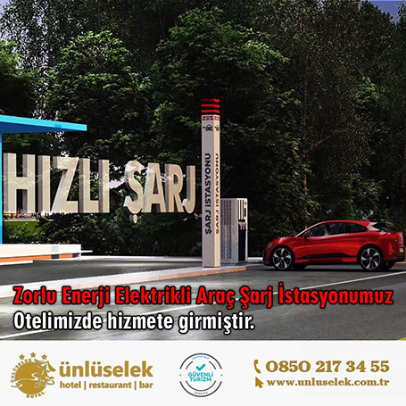 Ünlüselek Otel çevre için yaptığı çalışmalara bir yenisini daha ekleyerek, elektrikli araçlar için otel bünyesinde şarj istasyonu kurdu.