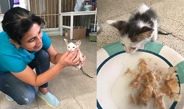 ANAMUR GAZETESİ / Musa Suğan - Sinanoğlu İşhanı'nda işyeri çalışanları Hacer Karahan ve Emine Kırıcı, annesi tarafından terk edilen yavru kediye sahip çıktı.